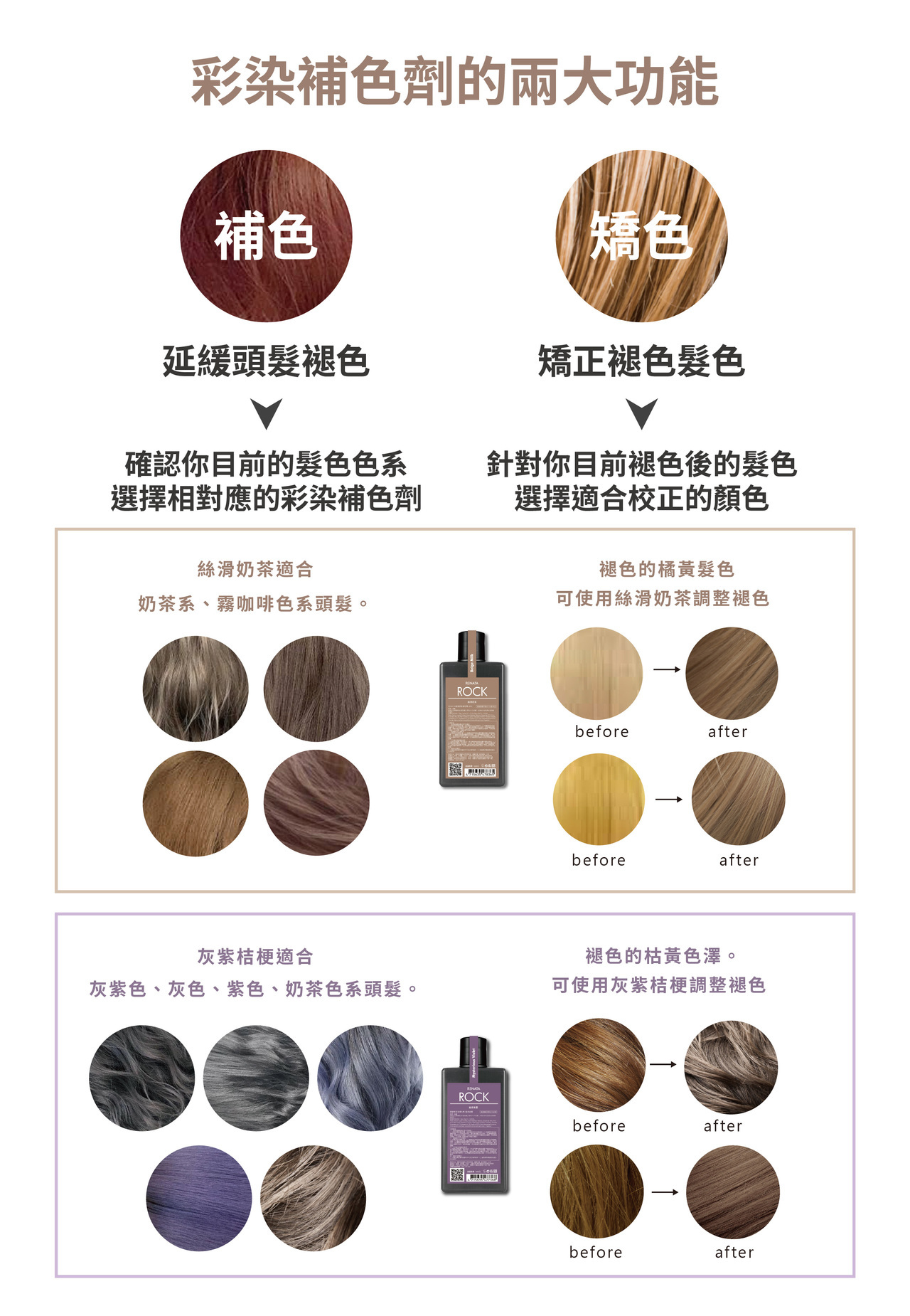 採用與髪色同色的補色劑,進行還原補色增加鎖色因子,延緩掉色使髮色維持更持久。