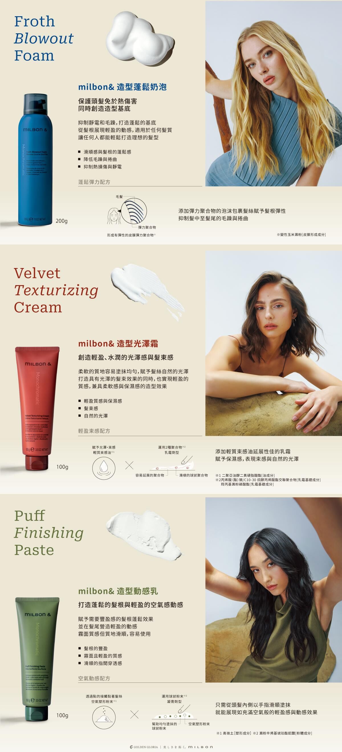 美國明星設計師打造的原創造型品,光聽這樣就迫不及待使用了!用過之後小編最喜歡造型蓬鬆奶泡,吹頭髮前使用可以隔絕熱傷害,頭髮本身比較粗硬毛燥,抹完造型品再吹頭髮,毛躁的感覺有減少!而且擠在手上感覺質地很輕盈不會有黏膩感。